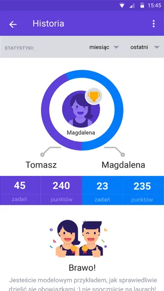 By stawić czoła tej sytuacji, stworzyliśmy Micasę - aplikację mobilną opartą na grywalizacji. Aplikacja umożliwia domownikom zbieranie punktów za wykonywanie prac domowych. Cel: dzielenie się obowiązkami pół na pół.